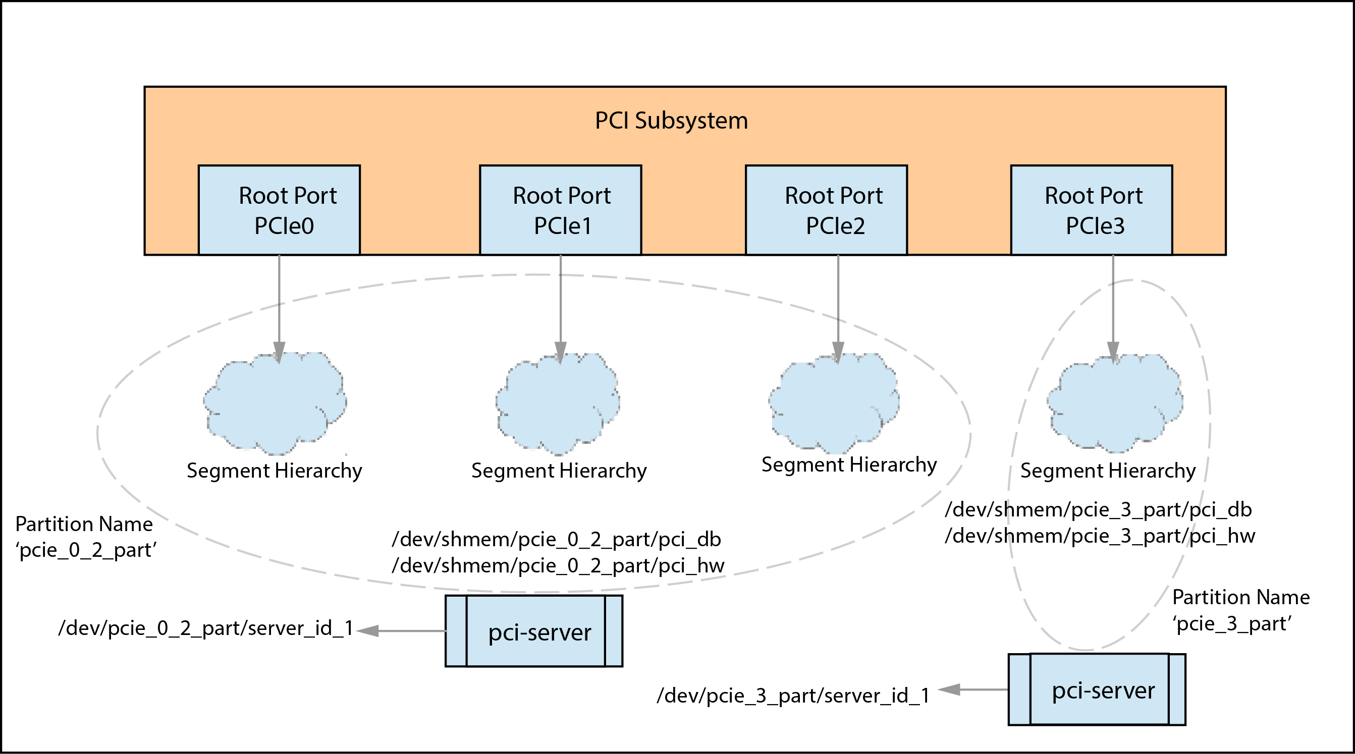 You can partition to separate the four segment hierarchies of the example system shown in Figure 3 in the Terminology section and enable the use of multiple pci-server instances.