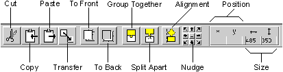 Commands for editing widgets, including cutting, copying, pasting, transferring, grouping, and aligning. These commands also appear on the speedbar, and are described in the Creating Widgets in PhAB chapter.